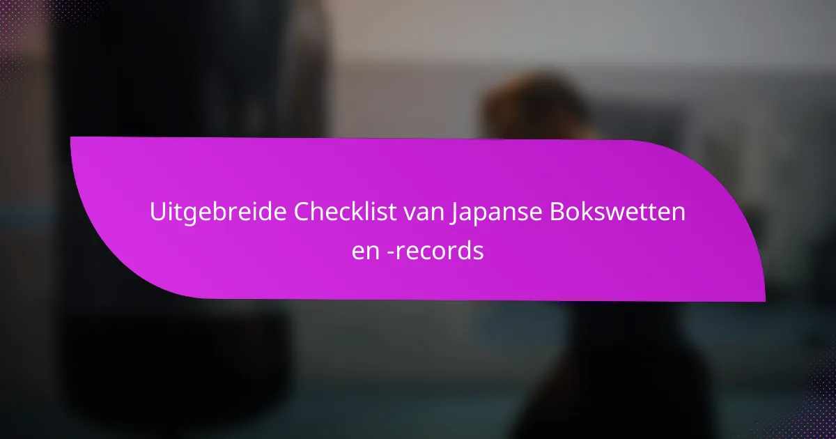 Deze uitgebreide checklist biedt een overzicht van de belangrijkste regels en historische gegevens die de Japanse bokssport definiëren. Beheerd door de Japan Boxing Commission (JBC), zorgen deze regels voor de integriteit en veiligheid van de sport, terwijl ze de unieke aspecten benadrukken die het onderscheiden van internationale normen. Daarnaast tonen de historische gegevens de opmerkelijke prestaties van atleten, wat de evolutie van de sport in de loop der tijd weerspiegelt.