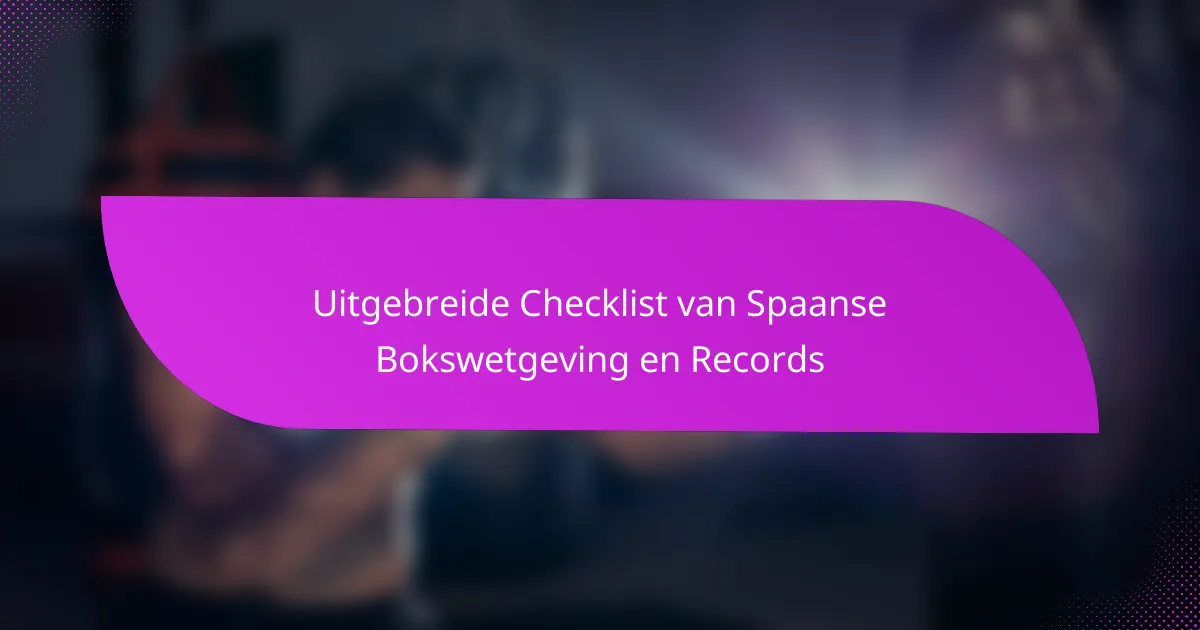 Deze uitgebreide checklist schetst de belangrijkste regels en registraties die het boksen in Spanje beheersen, voornamelijk vastgesteld door de Spaanse Boksfederatie (FEB). Het behandelt essentiële aspecten zoals licenties, gewichtsklassen, veiligheidsprotocollen en beoordelingscriteria, en zorgt voor eerlijke competitie en de veiligheid van deelnemers. Daarnaast benadrukt het hoe officiële organisaties nauwkeurige registraties van de prestaties van boksers bijhouden, die cruciaal zijn voor ranglijsten en historische context.