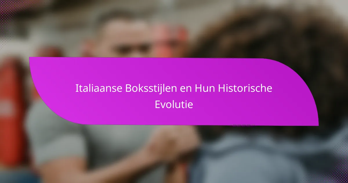 Italiaanse bokstijlen tonen een rijke erfenis die wordt gekenmerkt door onderscheidende technieken en historische betekenis, inclusief traditionele vormen zoals Pugilato en moderne aanpassingen zoals kickboksen. In de loop der tijd zijn deze stijlen geëvolueerd, beïnvloed door culturele verschuivingen en internationale competitie, terwijl ze de nadruk hebben gelegd op wendbaarheid, precisie en een unieke mix van offensieve en defensieve strategieën.